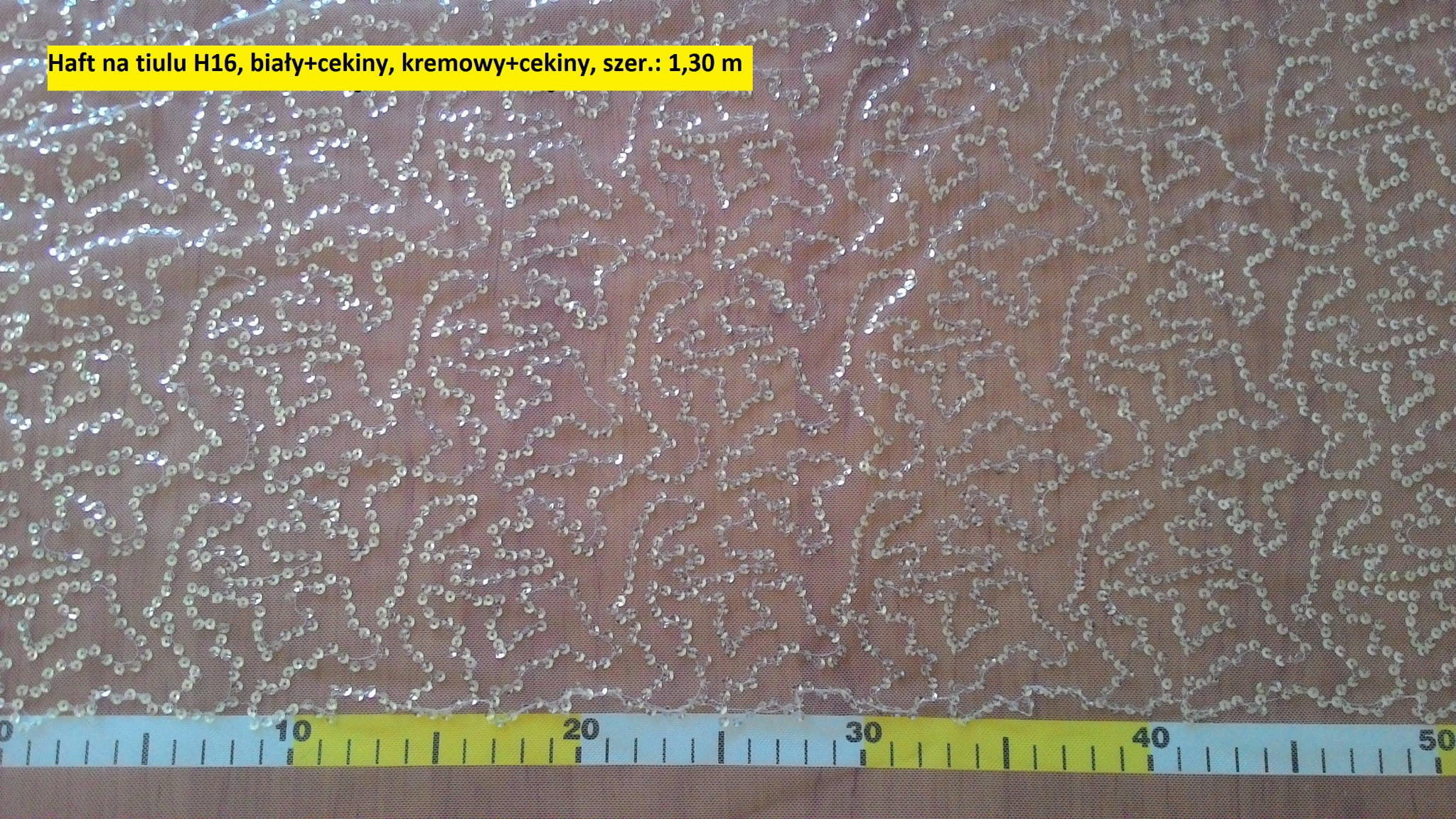 Dzianina (siatka tiulowa) z cekinami, wyszyta srebrnymi cekinami