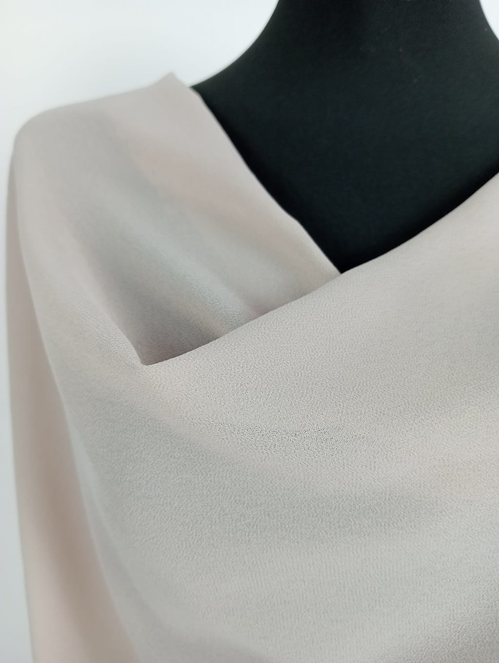 Krepa szyfon - delikatny, cienki, lejący materiał, bez połysku, strukturą przypominający żorżetę, w dotyku grubszy szyfon, gramatura: 150g/mb; szer.: 1,5 m