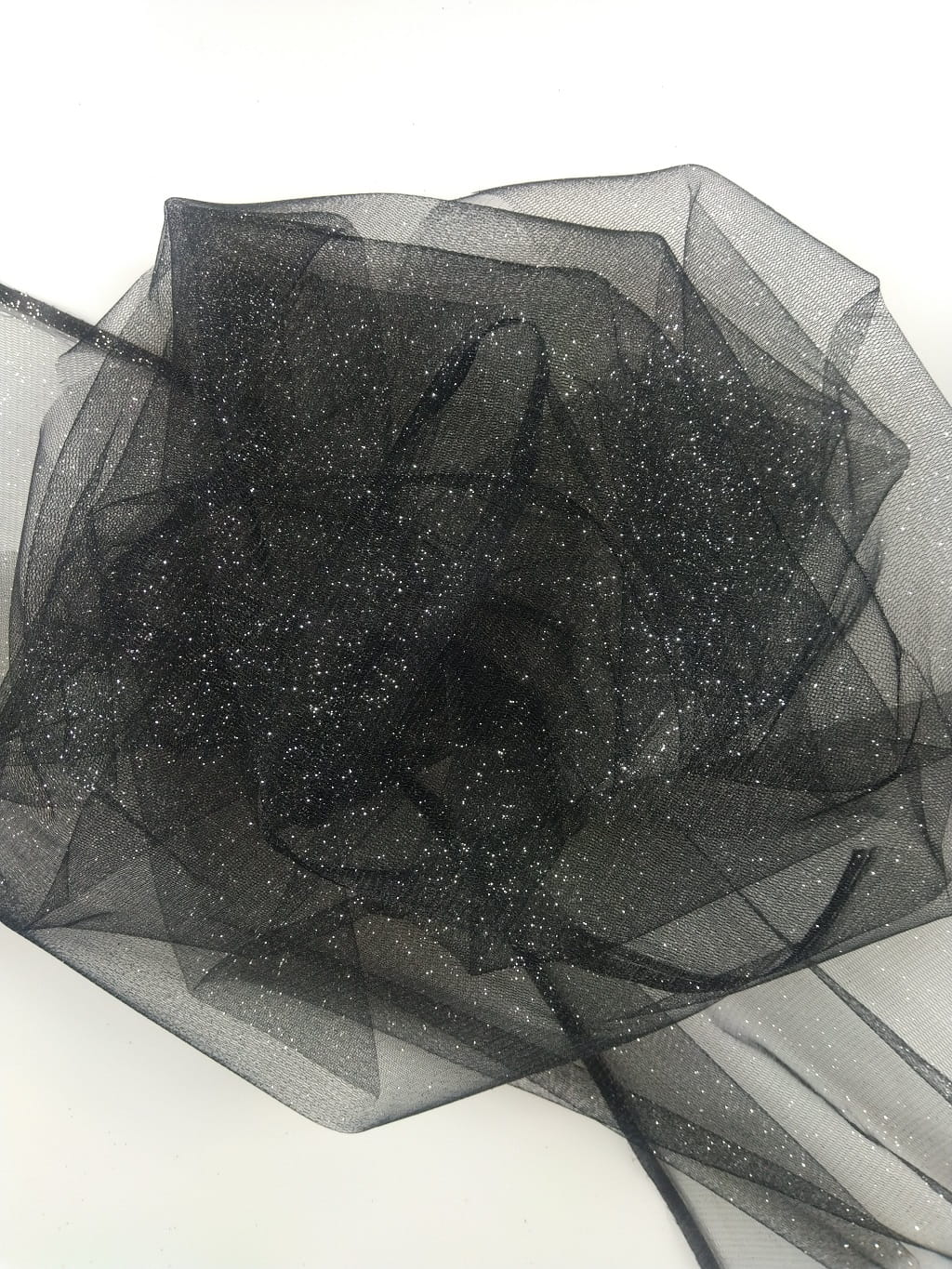 Tiul brokatowy błyszczący czarny lekko sztywny z brokatem sz.: 1,5 m