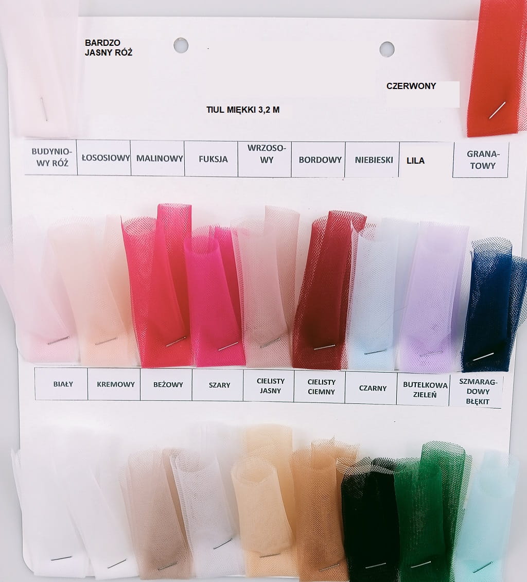Tiul miękki, lejący, lekko elastyczny, w wydajnej szerokości 3,2 m, idealny na suknie, spódniczki, dekoracje, ozdoby florystyczne...