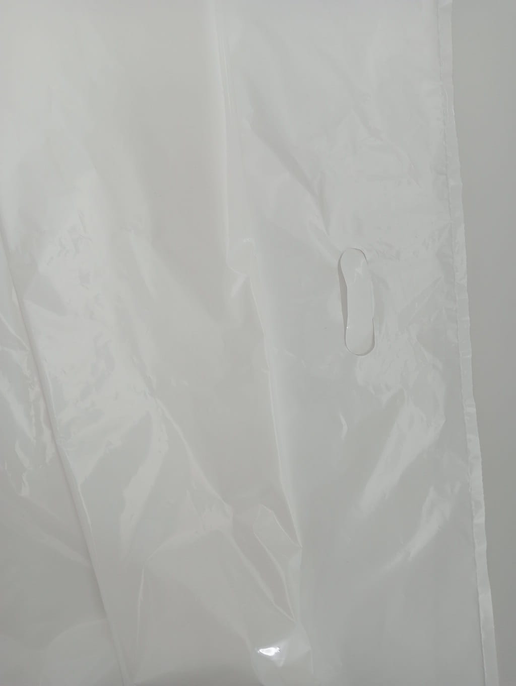 Worek na suknie ślubne i wizytowe, z grubszej białej folii. Na obydwu końcach posiada wykrojone uchwyty, tak, że po zapakowaniu sukni i złożeniu na pół tworzy się duża, ale poręczna i doskonale zabezpieczająca wnętrze torba.