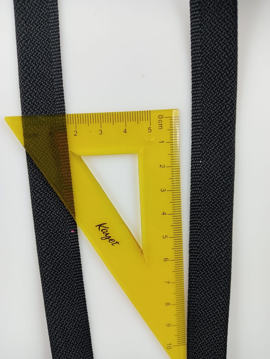 Taśma tzw. spodniowa rypsowa, czarna. Mocna o zwartym splocie taśma wykorzystywana do podszywania nogawek spodni oraz brzegów spódnicy. Taśma wzmacnia brzeg i zapobiega rozciąganiu się materiału.